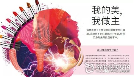 過去,品牌掌控著對美的定義。然而隨著年齡、性別、皮膚、頭發和體型的不同,美的定義也發生著改變?,F在對于各種品牌來說,消費者決定了什么是美。當消費者能接受他們自己的皮膚,頭發以及體型時,各種品牌在接下來的幾年內將提供更多的包容性,并且關注于個性化的美容產品。在2018年及往后,消費者能自己決定那些專屬于自己的個性化,定制化的美容產品,同時也將促使品牌重新劃分他們的消費群體。使品牌其更具包容性并提升定制化服務的水平。